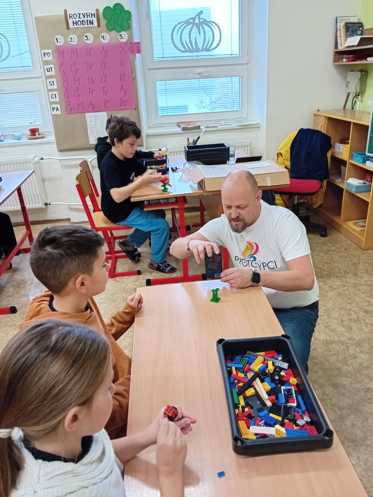 Neučit se celý den je sen všech dětí a těm našim – konkrétně všem třeťákům, čtvrťákům a páťákům – se ve středu 12. 11. splnil dokonale! Do školy přijel lektor s výukovým programem „Prototýpci“, který má rozvíjet podnikavost a kreativitu. Čekali jsme bůhvíjaké sofistikované pomůcky, ale světe, div se, stavebnice Lego bylo jeho jediným pomocníkem! A stavění mohlo začít…
